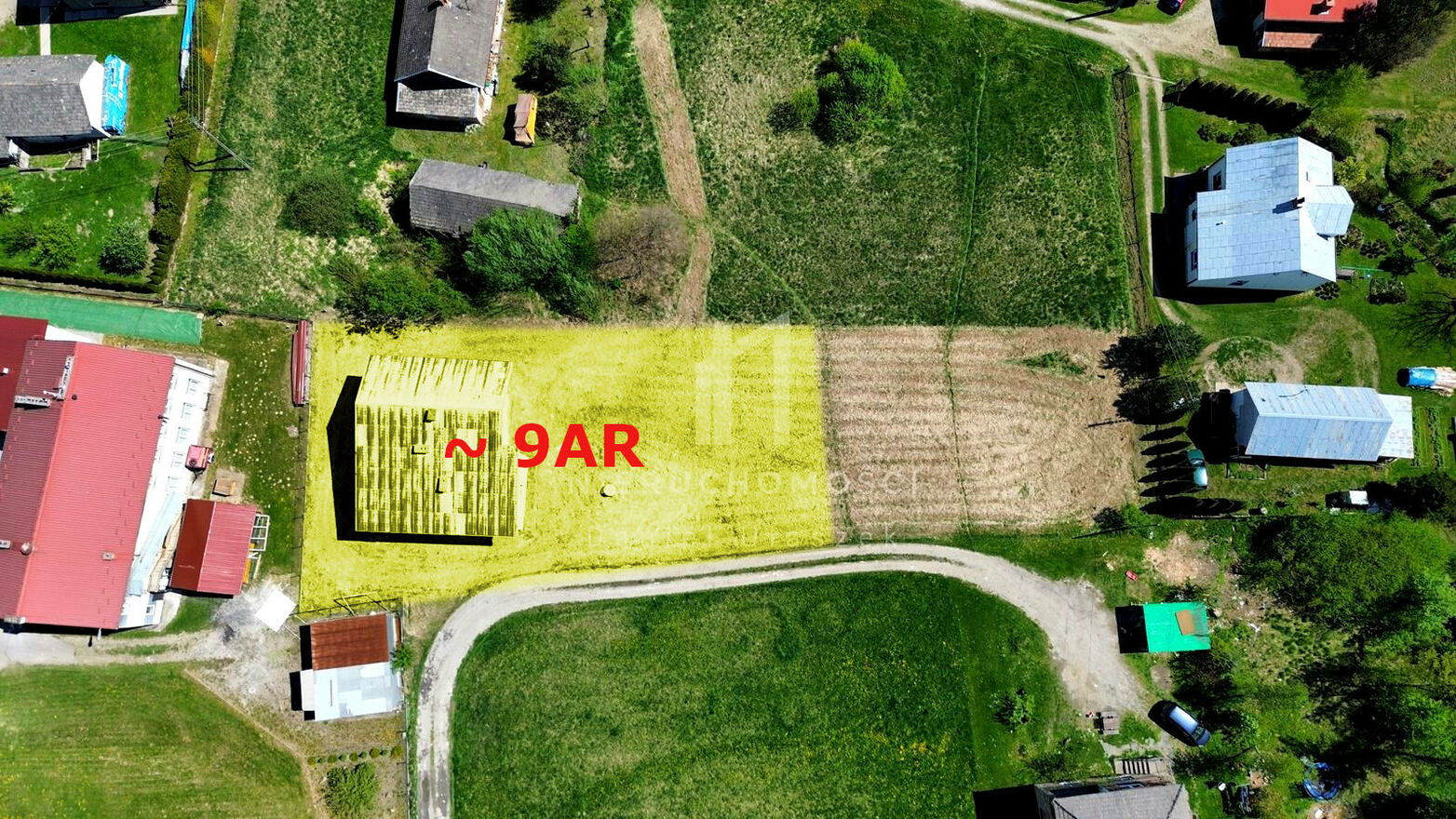 - Działka w kształcie prostokąta o wymiarach: 40m x 25m i powierzchni 9ar,